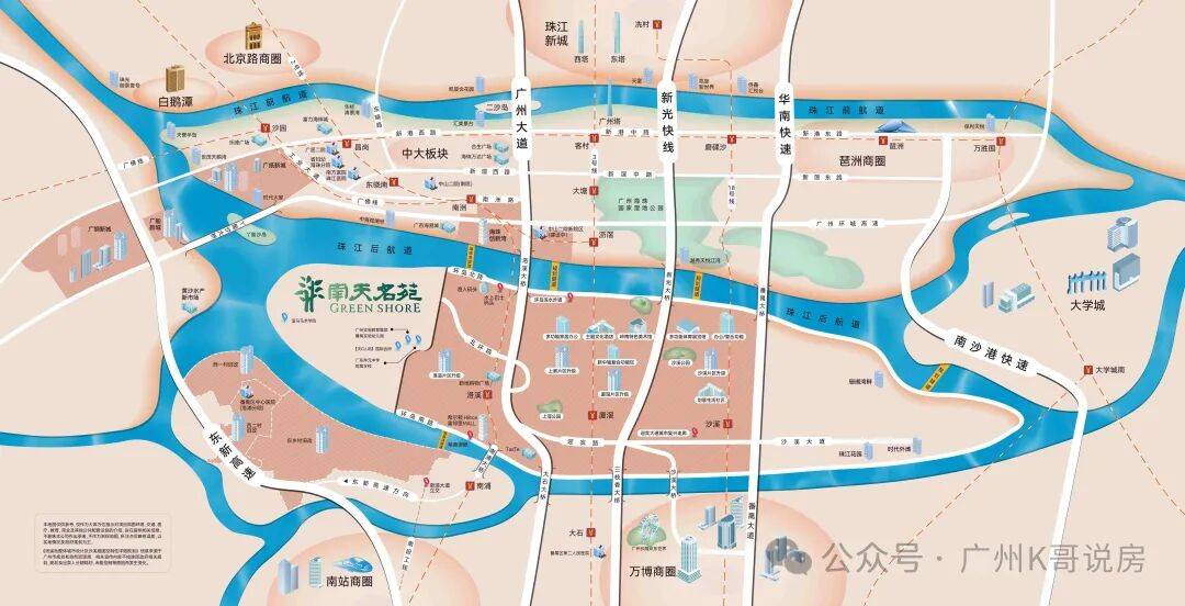③2018年2月24日国规委发布主城区范围,洛溪岛纳入主城区核心地段,同时广州中轴南移至洛溪岛,形成广州塔、珠江新城城市中轴景观;