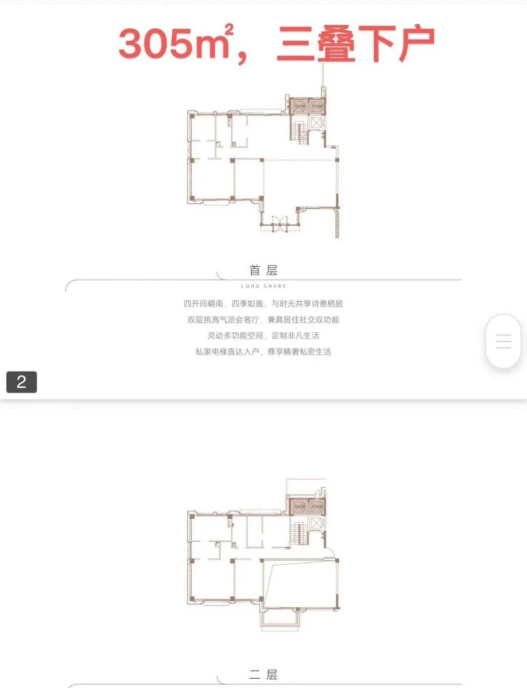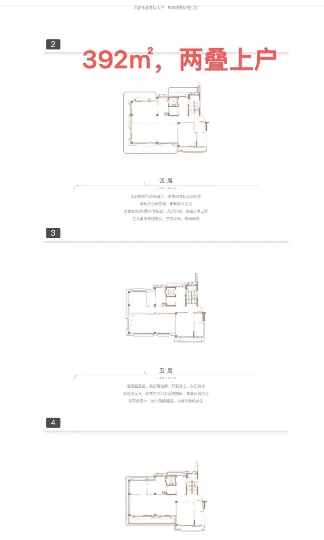 ●产品户型:两叠(上叠392㎡、下叠437㎡),三叠(上叠 285㎡、中叠279㎡、下叠305㎡)
