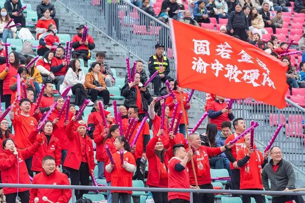 然而,现实与理想的温差,首先体现在看台上。可容纳数万人的庞大空间里,只稀疏地坐了约十分之一的观众。远征的渝中球迷仅有百余人,如同红色斑点,镶嵌在一片以巴南本地球迷之中。这与往日演唱会时万票难求、座无虚席的盛况形成了刺眼对比。