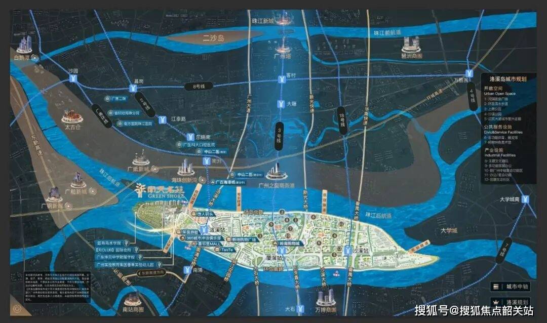 南天名苑位于洛溪岛岛尖,是继二沙岛之后,广州市中心第二个中轴岛,三江汇聚的独特地理位置为项目提供了绝佳景观与生态环境。该片区被纳入主城区核心范围,城市中轴延伸至洛溪岛,实现广州塔、珠江新城及南部滨江片区的视觉连接。