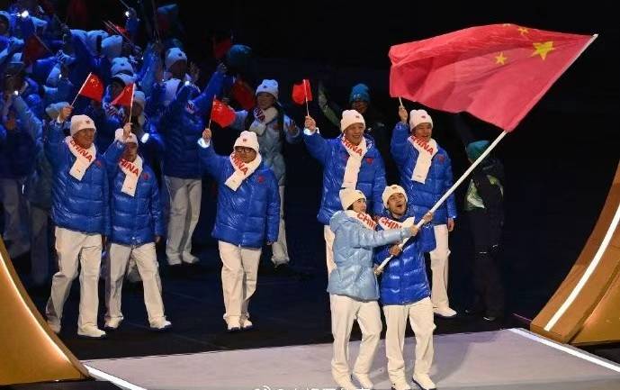 按照意大利语字母排序,中国体育代表团在第19位出场。速度滑冰名将宁忠岩与短道速滑新锐张楚桐的双旗手组合,高擎鲜艳的五星红旗引领代表团入场,两人以青春昂扬的姿态彰显着中国冰雪运动的青春与活力。