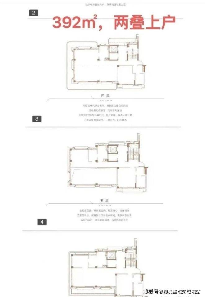 其中,两叠的上叠面积为392㎡,花园面积区间约为123-298㎡,天台面积约为93㎡,实用率193-259%;