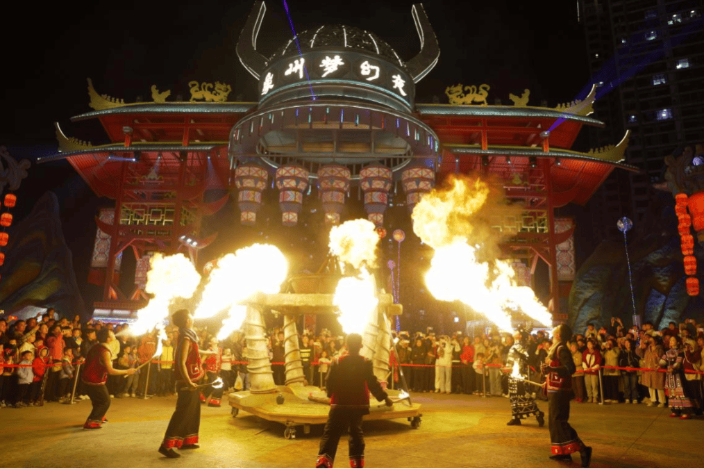 经过改造升级后的象州梦幻夜,新春强势回归!春节期间,景区特邀专业舞狮团队倾情献艺,龙腾狮跃、锣鼓喧天,为你献上满满的开年喜气。更有热闹年货市集、手写福字、非遗打铁花等精彩轮番上演,在流光溢彩中沉浸式感受传统民俗魅力。