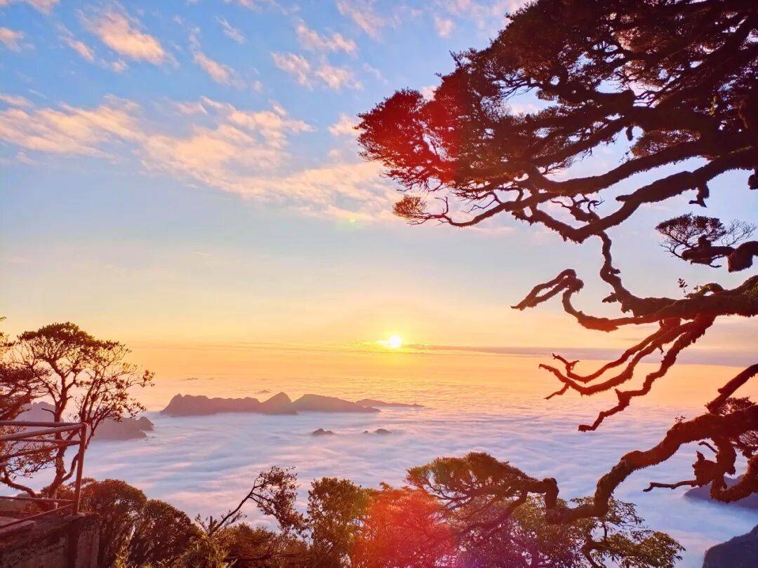 吃过早餐后,到达圣堂山景区,在山间轻徒步,呼吸高负氧离子空气,运气好时,还能在山巅邂逅新年的首轮日出与翻涌的云海,为新的一年讨个“步步高升、云开雾散”的好彩头。