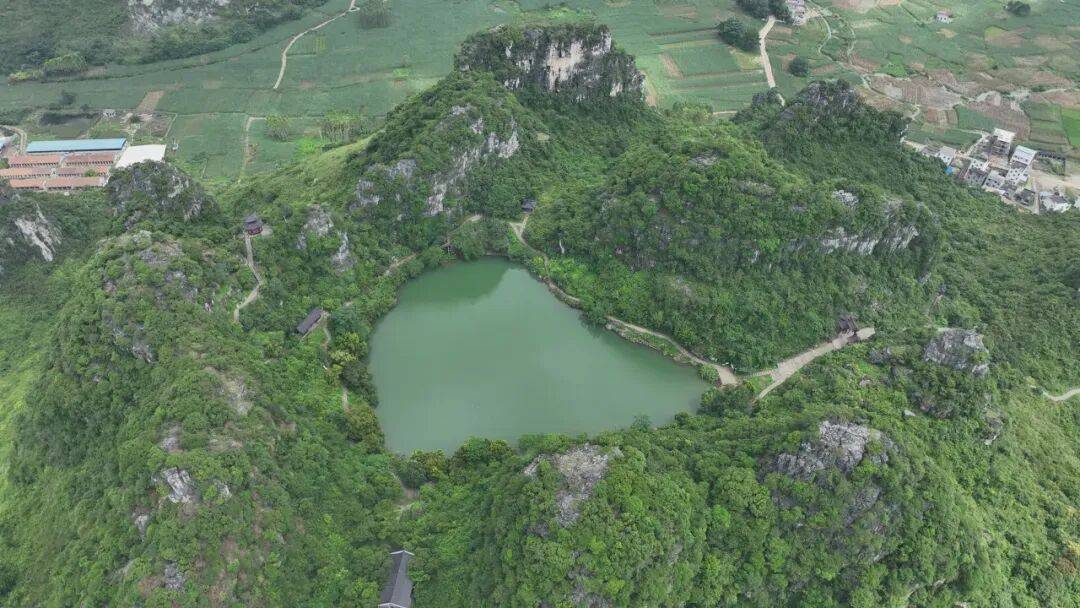 八仙天池景区是广西唯一的高山天然天池,碧水如盘,环绕田园风光。建有观景台、环湖步道、仙池牌坊等景点,从入口到天池登山沿途,红灯笼、小彩旗随风摇曳,一步步走向山顶,解锁“步步高升”的新春好寓意。