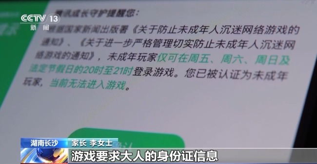 家长李女士:游戏要求大人的身份证信息,一开始我不给他的时候,他也跟我对抗,就一定要拿我的身份证去给他注册账号,这样子他就可以玩很久。